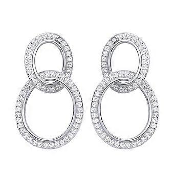 Jewelco London Sterling Silver CZ Interlocking Oval Link Drop Earrings Jewelco London