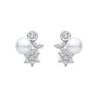 Jewelco London Sterling Silver CZ Cluster & Freshwater Pearl Stud Earrings Jewelco London