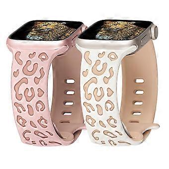 2 Pack Leopard Engraved Soft Silicone Watch Bands for Apple Watch Women 38mm 40mm 41mm 42mm