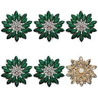 6 PCS Flatback Rhinestone Buttons 1.7x1.8inch Reusable Decorative Green Flower Buttons 2 Layers Platinum Color Alloy Embellishment for Sewing DIY Craf