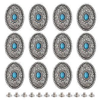 12sets Vintage Blue Turquoise Decorative Buckle with Screws Back Buttons Screw Back for DIY Craft Leather Belt Round Shape Leather Decorative Buckle f
