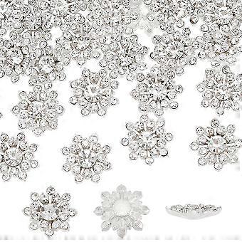 40 Pcs Rhinestone Buttons - 0.6 Inch Silver Alloy Shank, Snowflake Shape for Clothes, Bags Hats Decoration