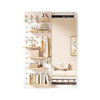 Wall Mounted Pegboard with Sliding Mirror, White Wooden Organizer Panel for SpaceSaving Storage