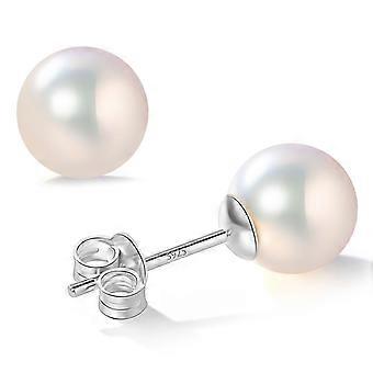 Round Akoya Cultured Pearl Earrings 8-8.5mm White/Black/Blue Pearl Studs, 925 Sterling Silver, Hypoallergenic, Solitaire