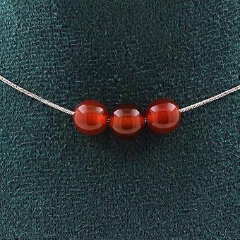 Necklace with 3 red agate beads 8 mm, stainless steel chain