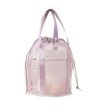 Net Bag with Drawstring, Foldable Beach Toy Bag with 2 Pockets, Pool Travel Handbag, Cosmetic Bag for Women in Purple
