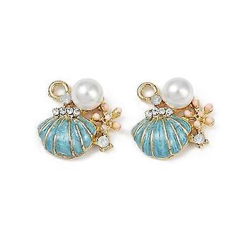 Brass Alloy Pendants with Enamel and Plastic Imitation Pearl Rack Plating Golden Shell Shape 16.5x15.5x6.5mm Hole: 1.8mm
