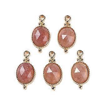 Natural Strawberry Quartz Faceted Pendans Golden Plated Brass Oval Charms 20.5x9.5x5.5mm Hole: 1.7mm