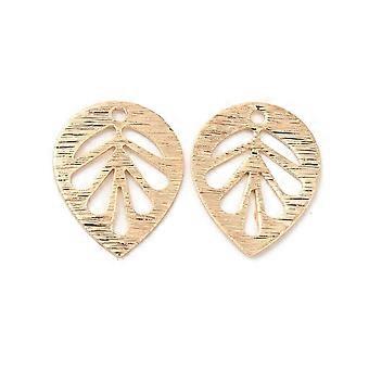 Brass Charms Cadmium Free Nickel Free Lead Free Hollow Leaf Charm Real 18K golden Plated 14x11x1mm Hole: 1mm