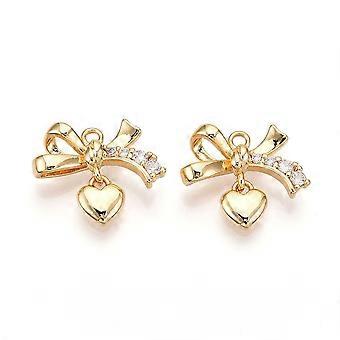 Brass Micro Pave Cubic Zirconia Charms Bowknot Heart Real 18K golden Plated 14x16.5x4mm Hole: 1.5mm
