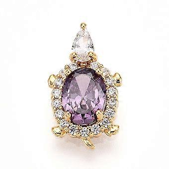 Brass Micro Pave Cubic Zirconia Pendants Tortoise Charms Medium Violet Red 17x10x5.5mm Hole: 2x3.5mm