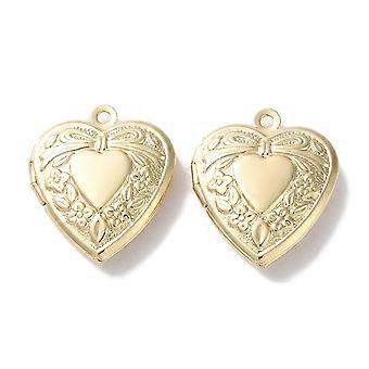 Rack Plating Brass Locket Pendants Long-Lasting Plated Lead Free Cadmium Free Heart Light golden 22.5x19.5x5.5mm Hole: 1.6mm Inner Diameter: 11x13.5mm