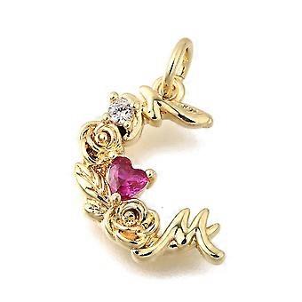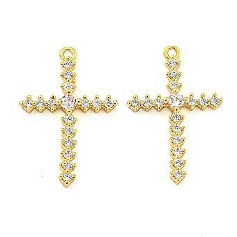 Rack Plating Brass Cubic Zirconia Pendants Cadmium Free Lead Free Long-Lasting Plated with Jump Ring Charm Real 18K golden Plated 22x13x5mm Hole: 1mm