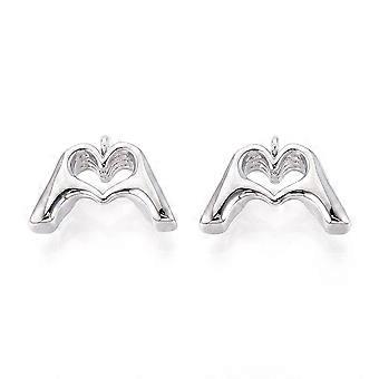 Brass Pendants Cadmium Free Nickel Free Lead Free Heart Hands Real Platinum Plated 10x14~14.5x4.5mm Hole: 1.2mm