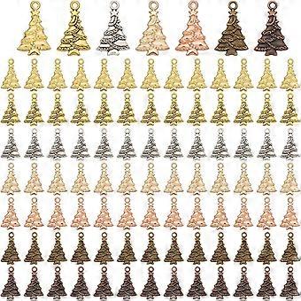 98 Pcs 7 Colors Christmas Tree Pendants Alloy Christmas Tree Charms Tibetan Style Pendants for DIY Necklace Bracelet Earring Making