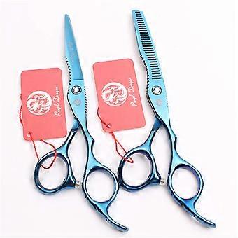 Professional Hair Cutting Scissors Blue Ergonomic Barber Thinning Shears Japanese Stainless Steel