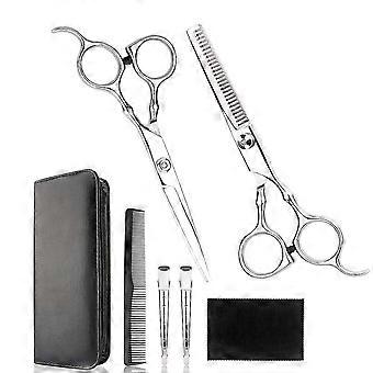 2PCS Professional Hairdressing Scissors Set Silver Barber Shears with Thinning and Straight Blades for Salon, Home and Pet Use