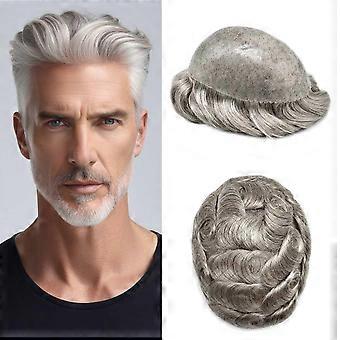 Mens Toupee Hair Replacement System Natural Remy Human Hair 0.1mm Thin Skin PU 7x9 Off Black 80% Gray