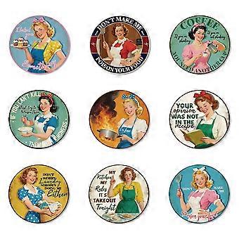 9 Pcs Wood Coasters for Drinks Retro Housewife Colorful Wooden Cup Mat for Coffee Table Decor, 3.9" Non-Slip Desk Coasters for Home, Apartment, Office