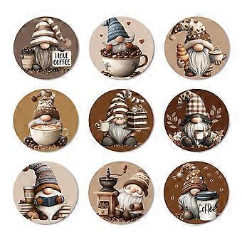9 Pcs Wood Coasters for Drinks Coffee Gnome Colorful Wooden Cup Mat for Coffee Table Decor, 3.9" Non-Slip Desk Coasters for Home, Apartment, Office, B