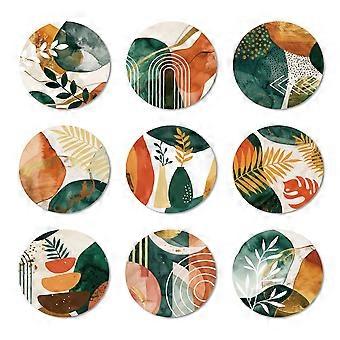 9 Pcs Wood Coasters for Drinks Abstract Art Plants Colorful Wooden Cup Mat for Coffee Table Decor, 3.9" Non-Slip Desk Coasters for Home, Apartment, Of