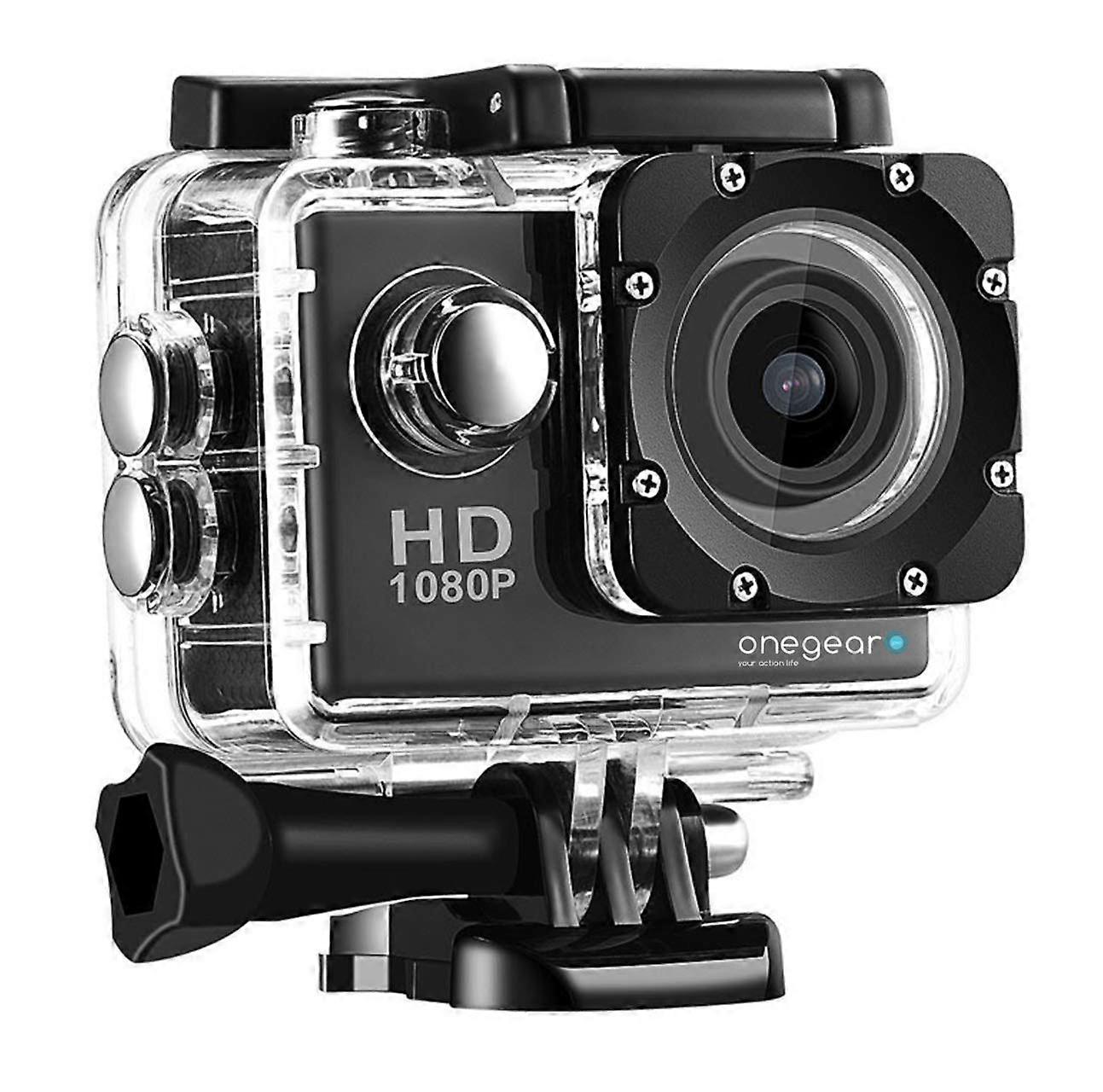 Onegerpro FUN1080 LT Action Camera Full HD 1080P 2.0 Inch Display Waterproof Up to 30 Metres Black with Carry Bag