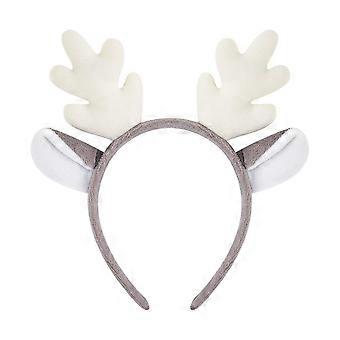 Christmas Reindeer Antler Headbands Plush with White Ears for Kids and Adults Holiday Party Costume