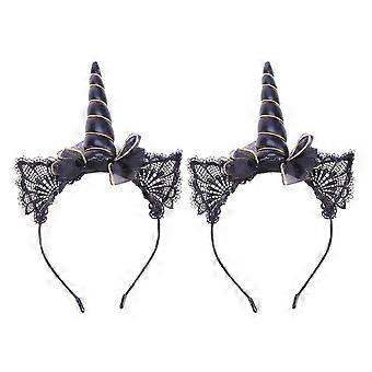 Unicorn and Cat Ear Headband Set with Lace, Adjustable Fit for Halloween and Costume Parties