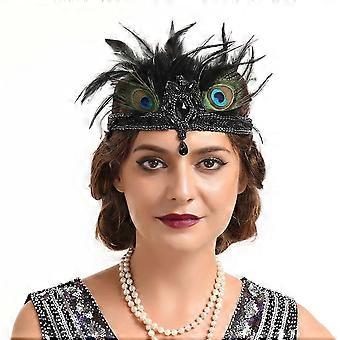 1920s Flapper Headband with Feather and Rhinestone Gatsby Hair Accessory for Women Black