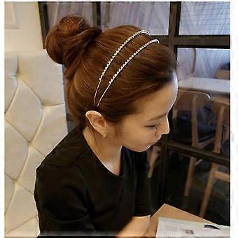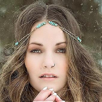 Boho Head Chain Bridal Headpiece with Rhinestones Adjustable Silver Forehead Headband for Women