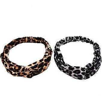 Leopard Print Twist Knot Headbands for Women, Stretchy Yoga Workout Hair Bands, 2Pack