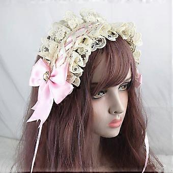 Lolita Headdress with Lace and Ribbon, Maid Cosplay Headband with Hidden Hairpins Pink