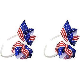 2Pack Patriotic Headband with USA Flag Bow for Girls, Fourth of July Hair Accessory White