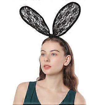 Black Lace Bunny Ear Headband Sexy Lace Rabbit Ears for Party and Bridal Makeup Accessory