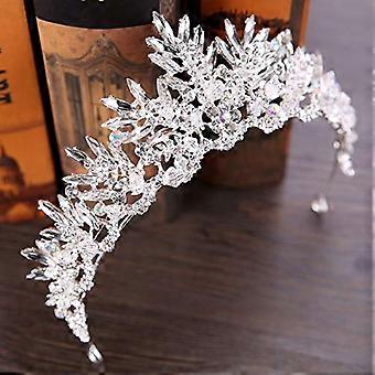 Silver Rhinestone Bridal Tiara Baroque Wedding Crown for Bride Elegant Vintage Alloy Headpiece