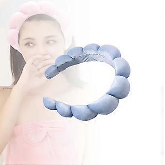 Spa Headband for Women Blue Puffy Terry Cloth Makeup Headband for Washing Face and Skincare