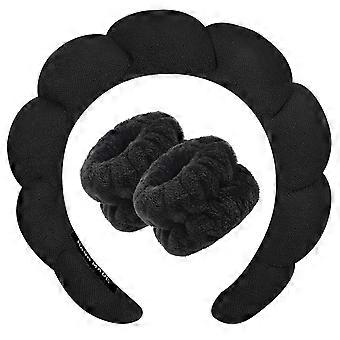 Spa Headband for Women Soft Terry Cloth Makeup Headband Moisture Absorption Design Black One Size