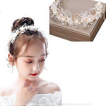 Kids Headband Girls Hanfu Flower Tassel Hairband with Pigtail Wig and Pearl Bow for Festivals