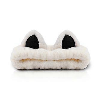 Cat Ear Makeup Headband White Soft Elastic Fleece Spa Hair Band Keeps Hair Secure for Skincare