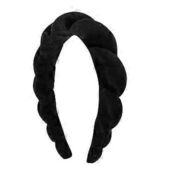 Spa Headband with Volumizing Sponge Core, Soft Terry Cloth for Face Washing, Makeup Removal, Black