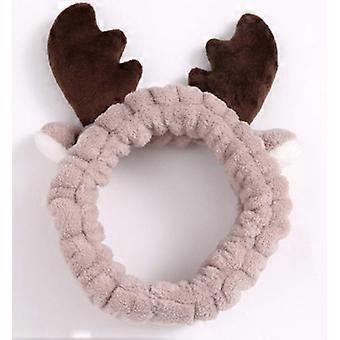 Flannel Headband with Antler Design Ultra Soft Elastic Hair Band for Women Skincare and Yoga