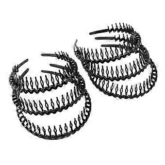 Set of 6 Unisex Plastic Headbands with AntiSlip Teeth for Quick Styling and Secure Grip, Black