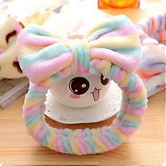 Headband for Women Pink Soft Coral Fleece Spa Headband Elastic Bowtie Hair Band for Face Wash