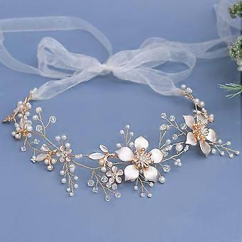 Bridal Head Chain Goldtone Floral Crystal Forehead Headpiece with Adjustable Elastic Band