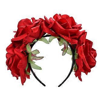 Large Maroon Rose Flower Headband Floral Crown with Silver Metal Band for Wedding Hair Styling