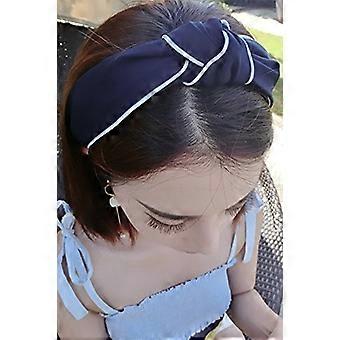 Headband for Women Wide Knotted Design with White Trim Blue Cloth Hair Band Comfortable Fit