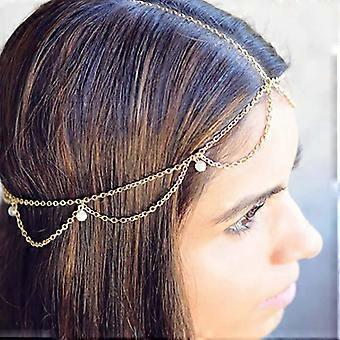Boho Gold Layered Head Chain Headpiece Gypsy Prom Hair Accessories for Women and Girls