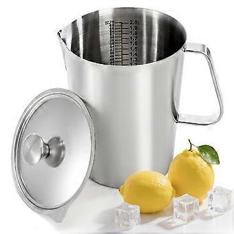 600ml Stainless Steel Milk Frothing Pitcher with Long Handle and Measurement Markings for Home