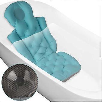 Bath Pillow for Bathtub Full Body Ergonomic Head Neck Support Quick Dry Blue 63.5x37cm