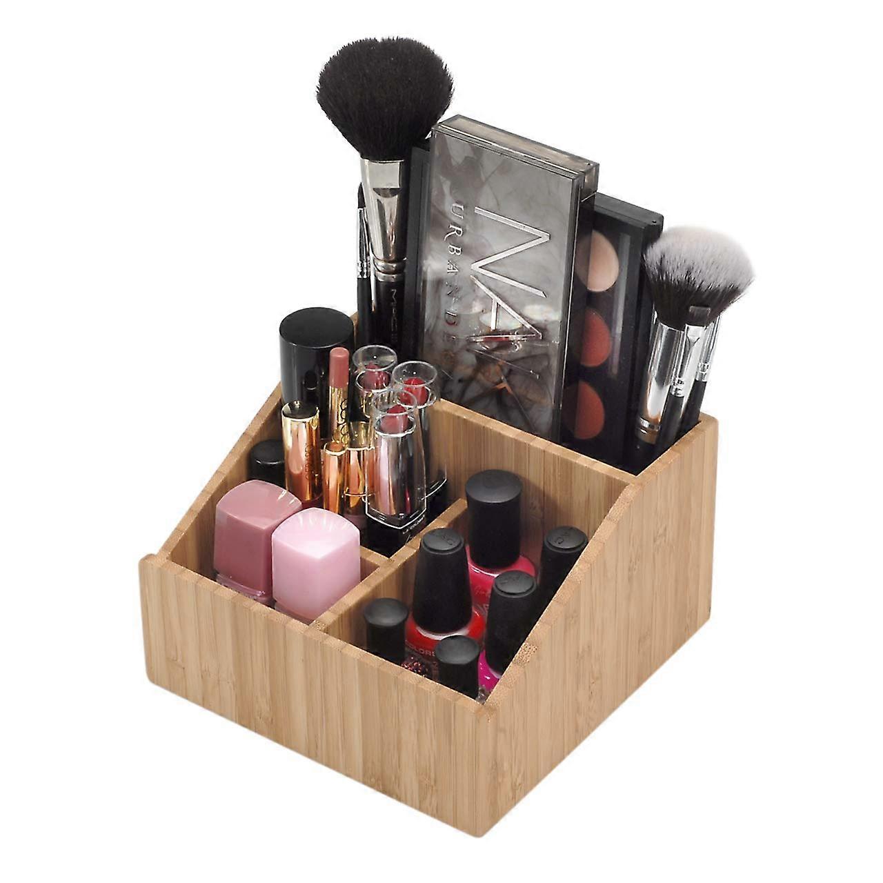 Bamboo Makeup Organizer Caddy for Lipsticks and Perfumes Storage with Nail Polish and Lotions Holder